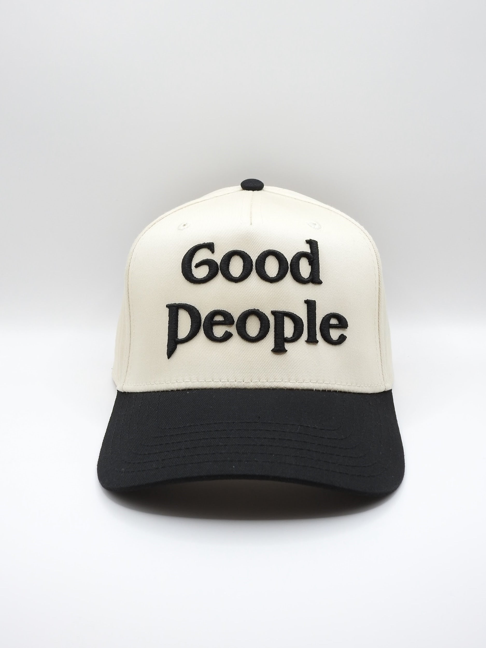 Crafted from premium materials, it boasts an embroidered "Good People" logo that speaks to your vibe—positive, laid-back, and always in style. The adjustable strap ensures a custom fit, while the breathable fabric keeps things cool no matter where the day takes you.