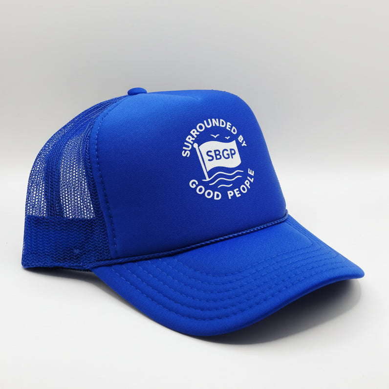 The Surrounded By Good People trucker hat pairs a tall, high-crown 5-panel silhouette with a polyester foam front for a crisp, structured look and a generous print area, while the mesh back keeps airflow easy for all-day wear; a subtle 2 mm rope/braid detail at the base of the crown adds that classic trucker finish without feeling heavy-handed. Built on a proven foam-front/mesh-back construction that holds its shape, it’s the kind of lid that stays comfortable, breathes well, and looks sharp from first wear to last.